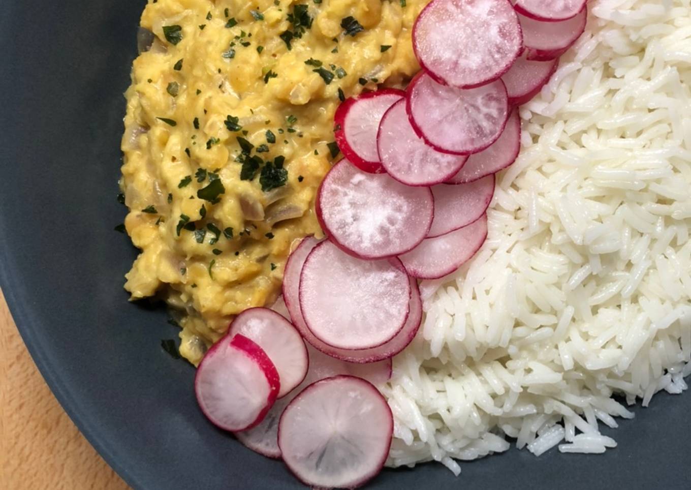 - Servir accompagné de riz, de quelques rondelles de radis et d’un peu de coriandre.