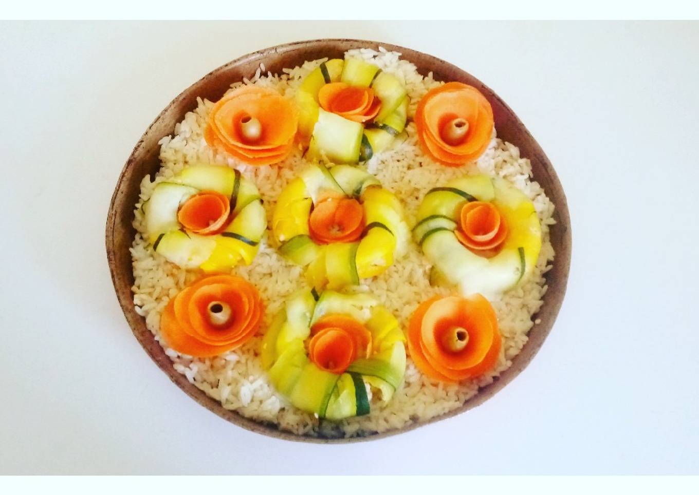 - Il reste plus qu'à former des petites fleurs avec les lamelles de carottes et d'ajouter des olives.