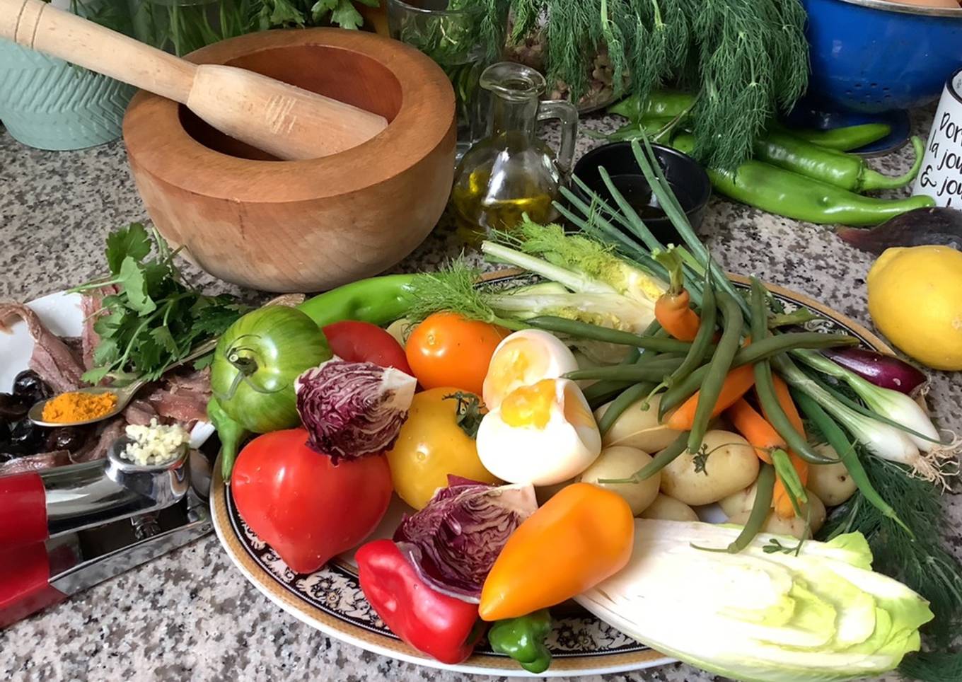 - Faire bouillir les œufs 9 mn rafraîchir à l’eau froide et réserver au frais coupez vos légumes 🌽 crus et faire bouillir les pomme sde terre carottes et haricots vert puis mettre les haricots dans de l’eau glacée pour la couleur