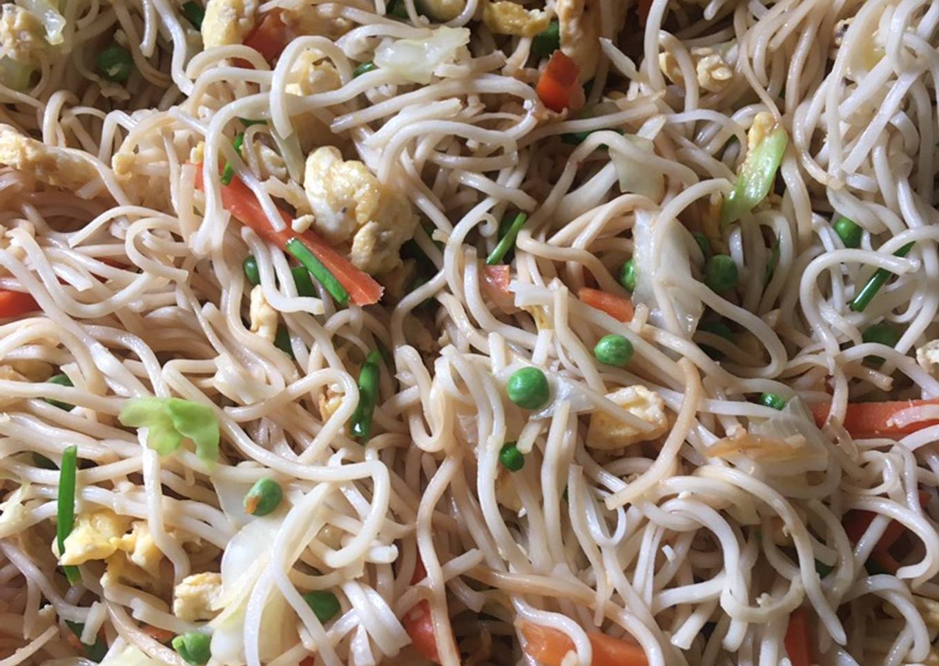 - Quand les nouilles sont cuit et les légumes, les œufs également mélangés le tout avec la sauce maggi avec un tout p’tit peu d’huile d’olive pour que sa soit pas trop sec