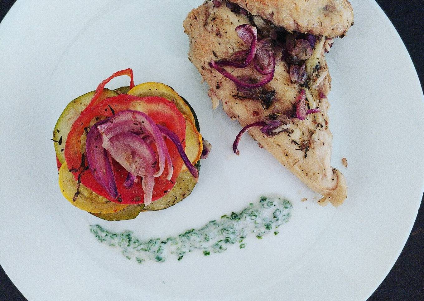 Coquelet rôti au four et courgette en emporte pièce