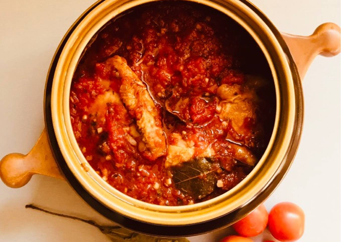 - Versez ces ingrédients dans un plat allant au four, parsemez de feuilles de laurier, romarin, etc…(de votre choix). Enfournez pour 45 minutes.
