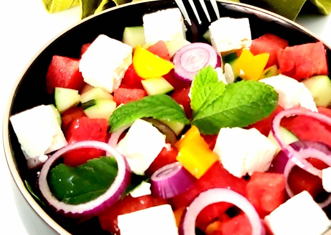 Hello everybody, it is John, welcome to our recipe page. Today, we're going to make a special dish, Salade pastèque et fêta. It is one of my favorites. For mine, I will make it a bit tasty. This will be really delicious.
